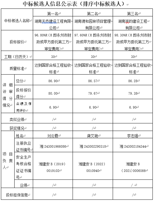 根据招标投标相关法律法规及招标文件的规定,永州陆港食品保鲜技术共享中心柔性产线生产车间装饰装修项目于2025年11月18日在天鉴国际工程管理有限公司开标、评标。本招标项目采用湘建监督[2024]33号文件规定的经评审的最低投标价法,资格审查方式为资格后审,评标委员会推荐了以下三名中标候选人(排序),现将相关信息予以公示。
