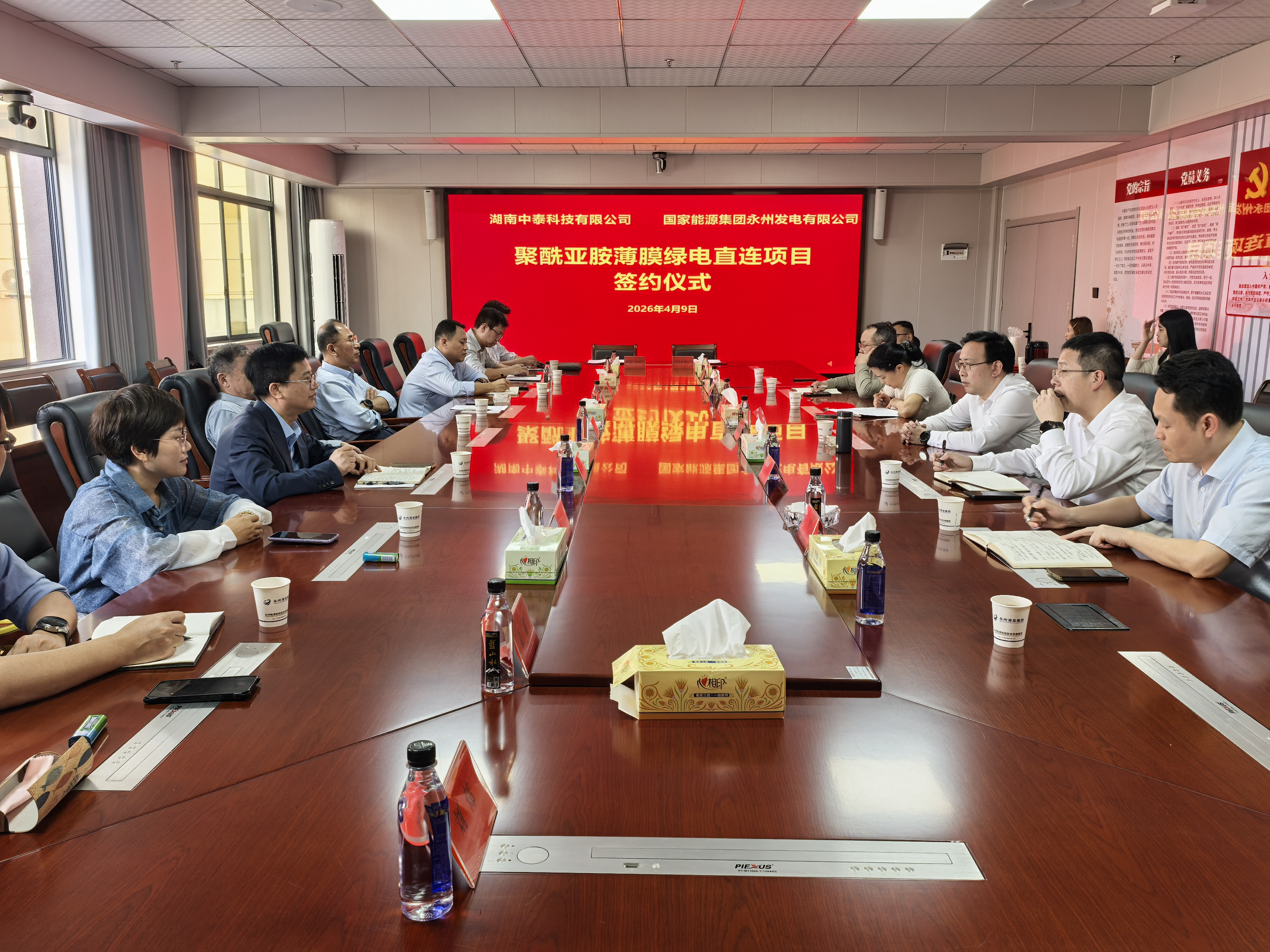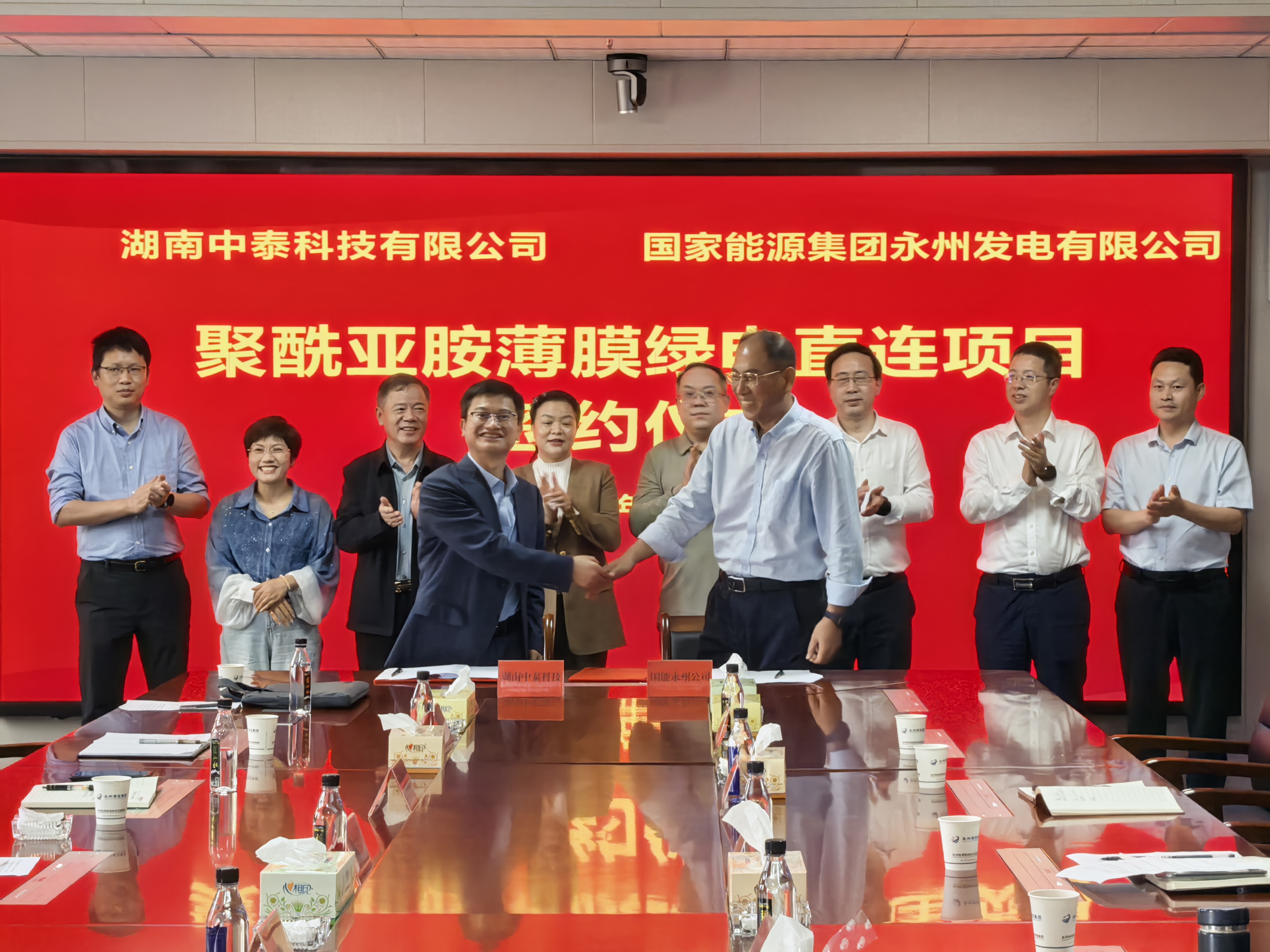 4月9日,湖南中泰科技有限公司与国家能源集团永州发电有限公司在永州陆港举行聚酰亚胺薄膜绿电直连项目签约仪式。